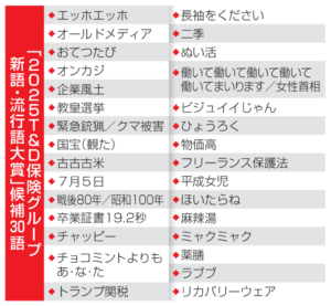 トップテンは「エッホエッホ」「オールドメディア」「緊急銃猟/クマ被害」「国宝(観た)」「古古古米」「戦後80年/昭和100年」「トランプ関税」「二季」「ミャクミャク」ですが、今までにCUWで取り上げたことのなかった語をメインに紹介します。